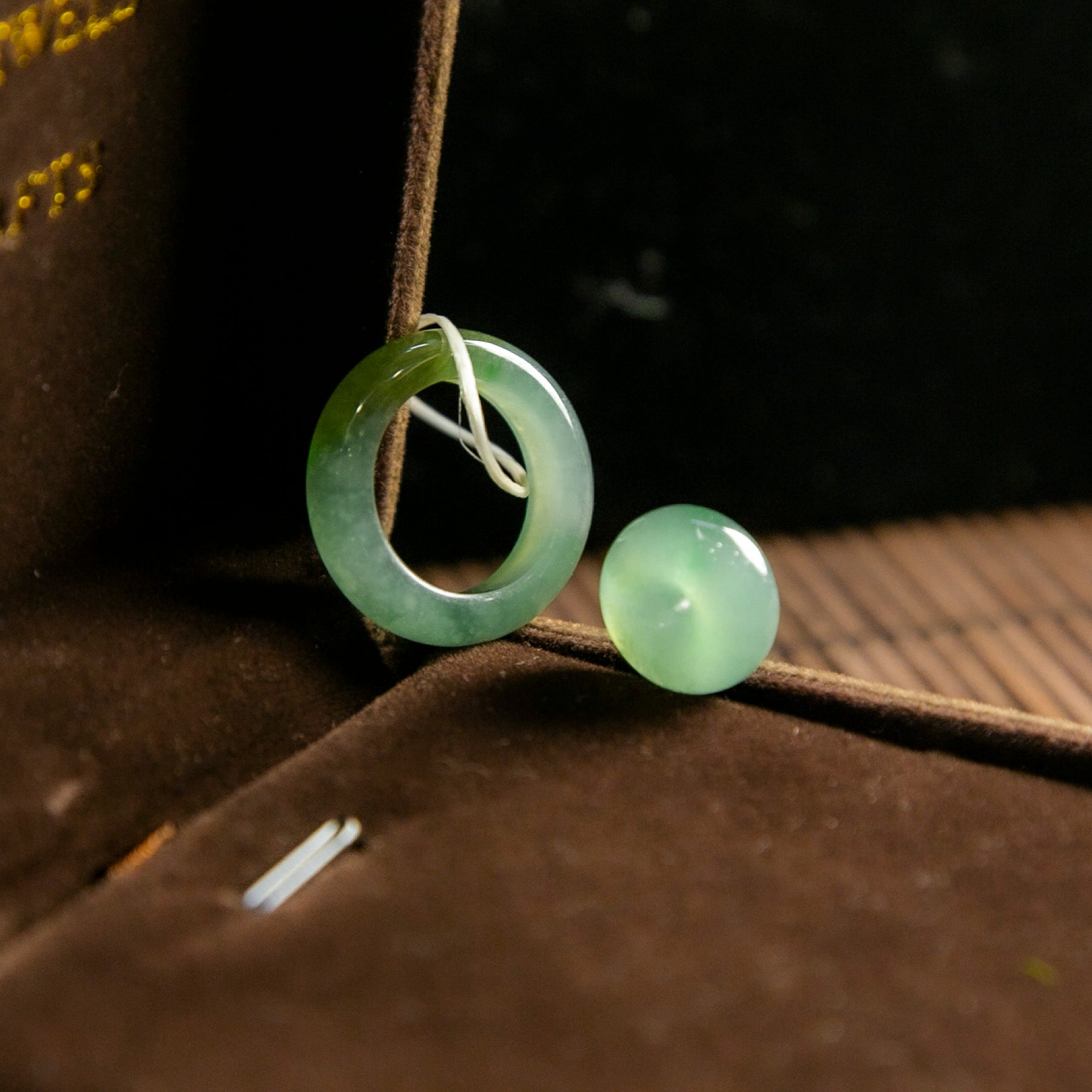 天然緬甸翡翠冰藍綠玉戒+平安扣套裝
