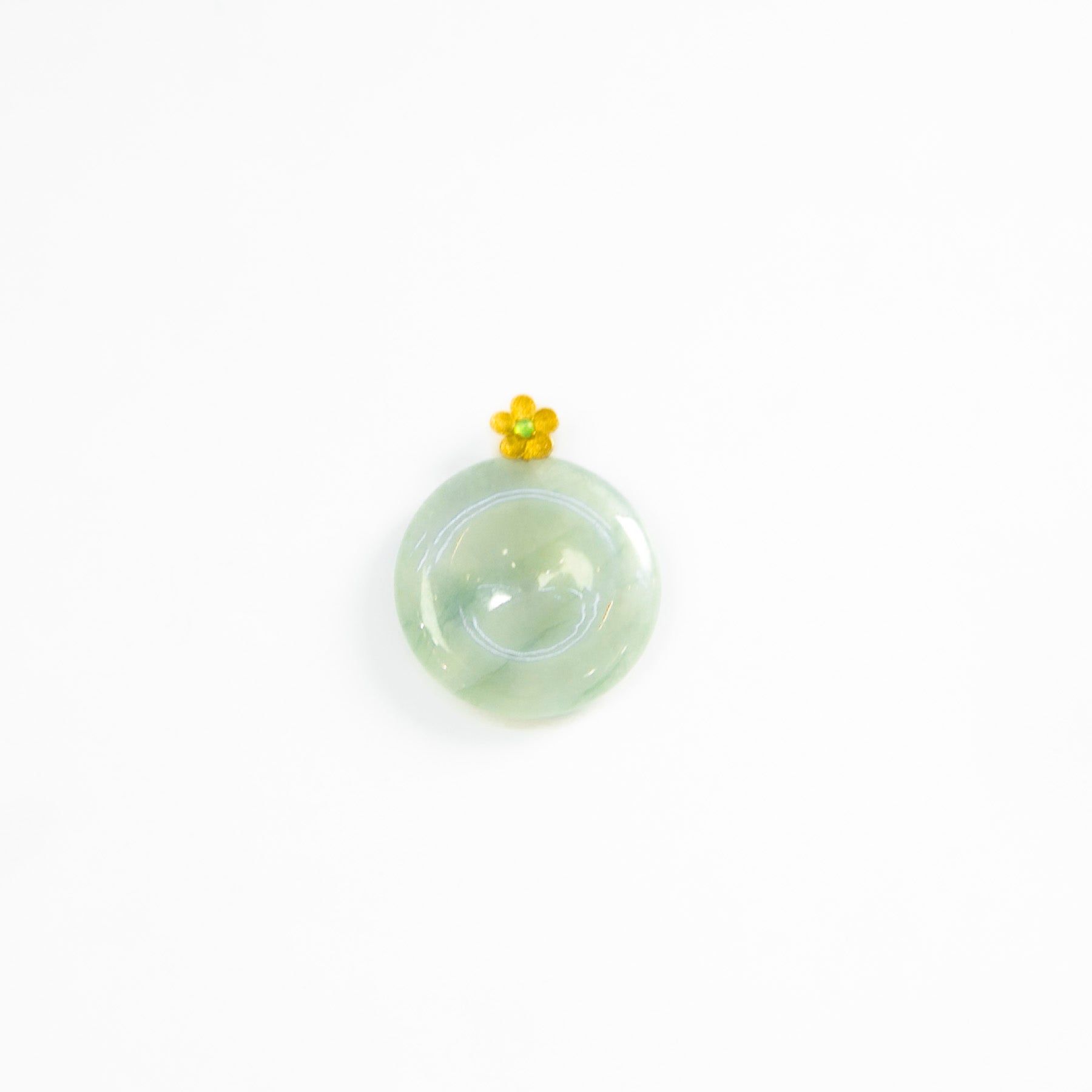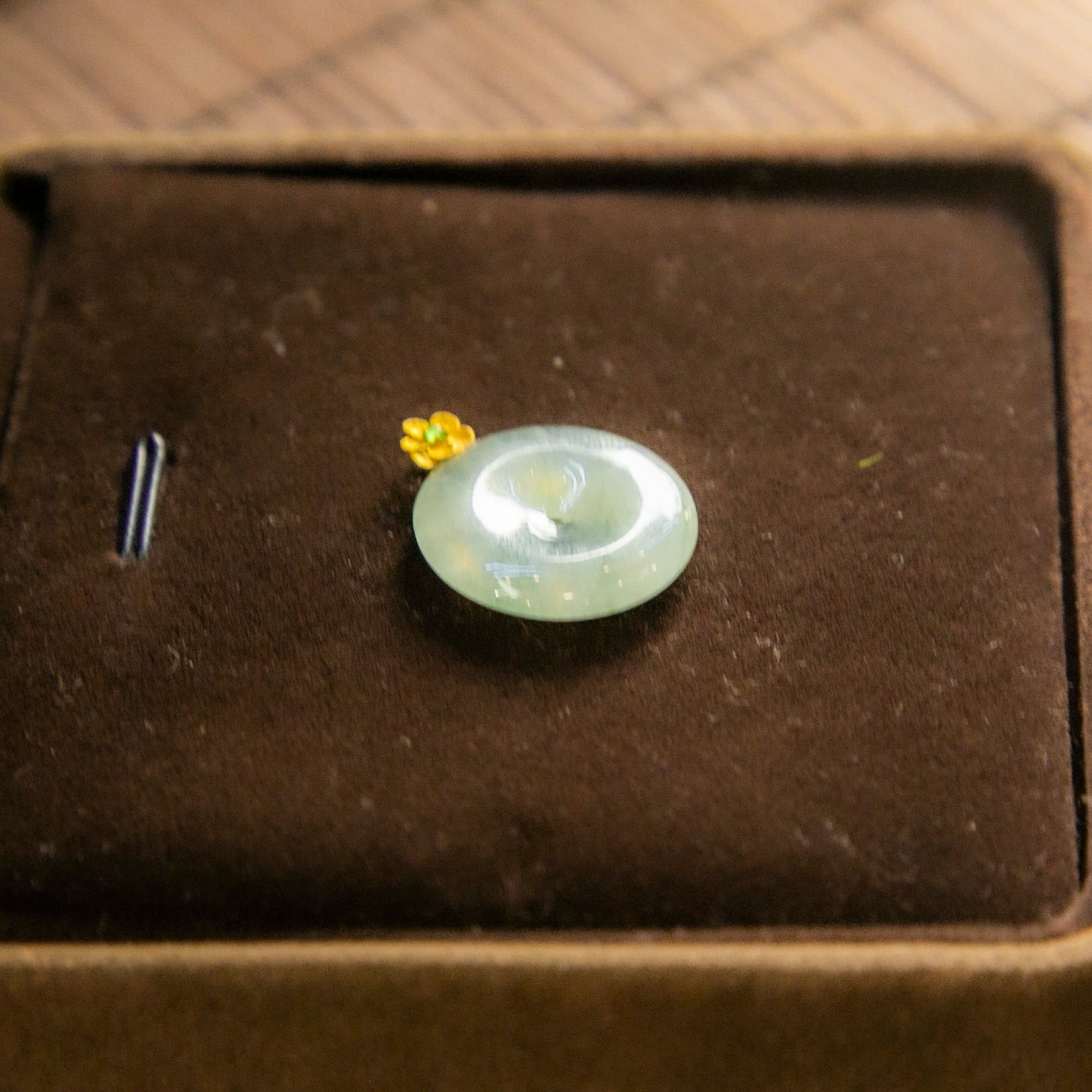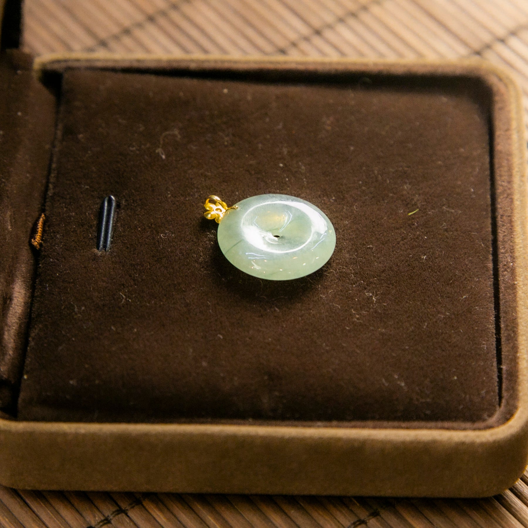 18K金天然緬甸翡翠冰淡綠飄花平安扣吊墜
