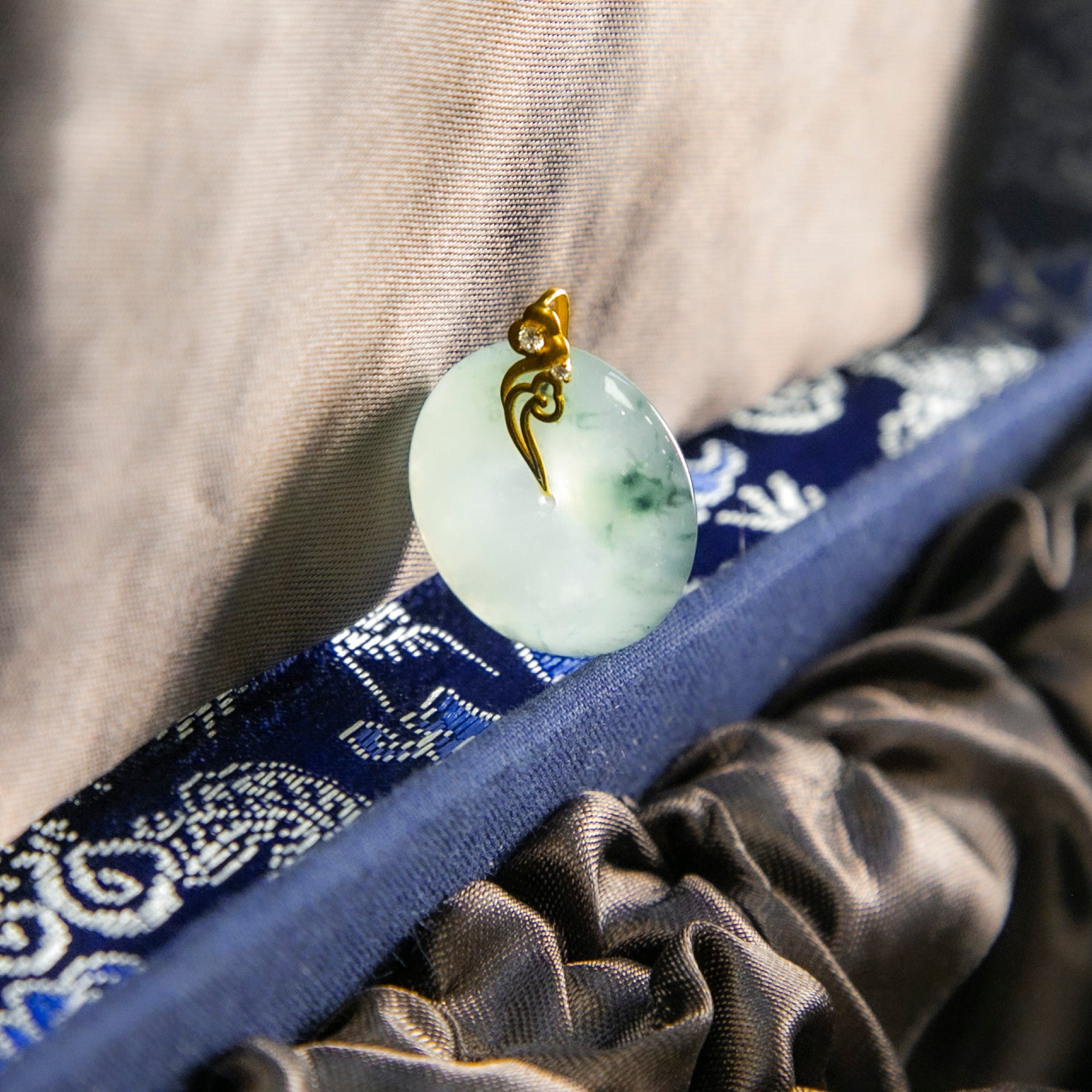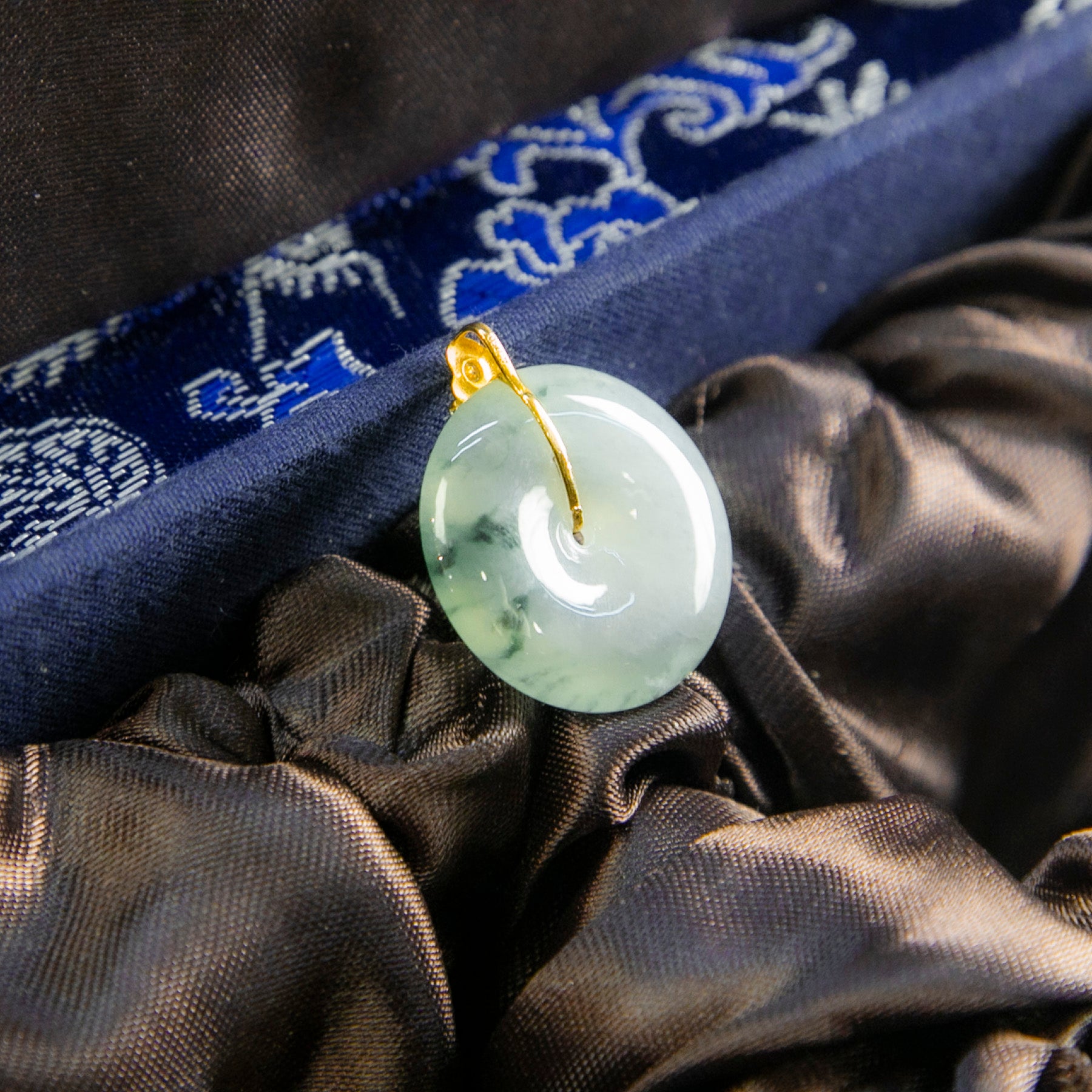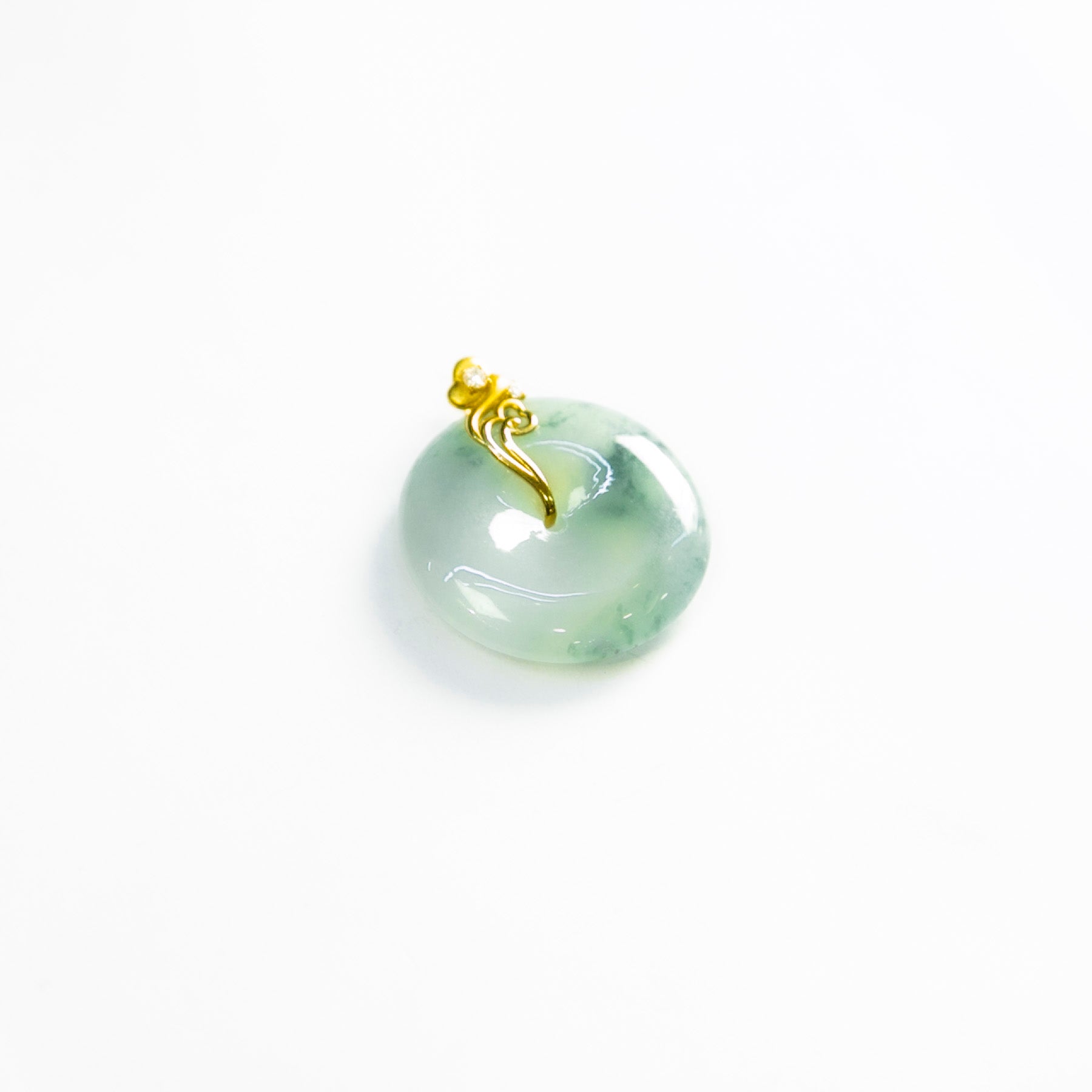 18K金鑲鑽天然緬甸翡翠冰白飄花平安扣吊墜