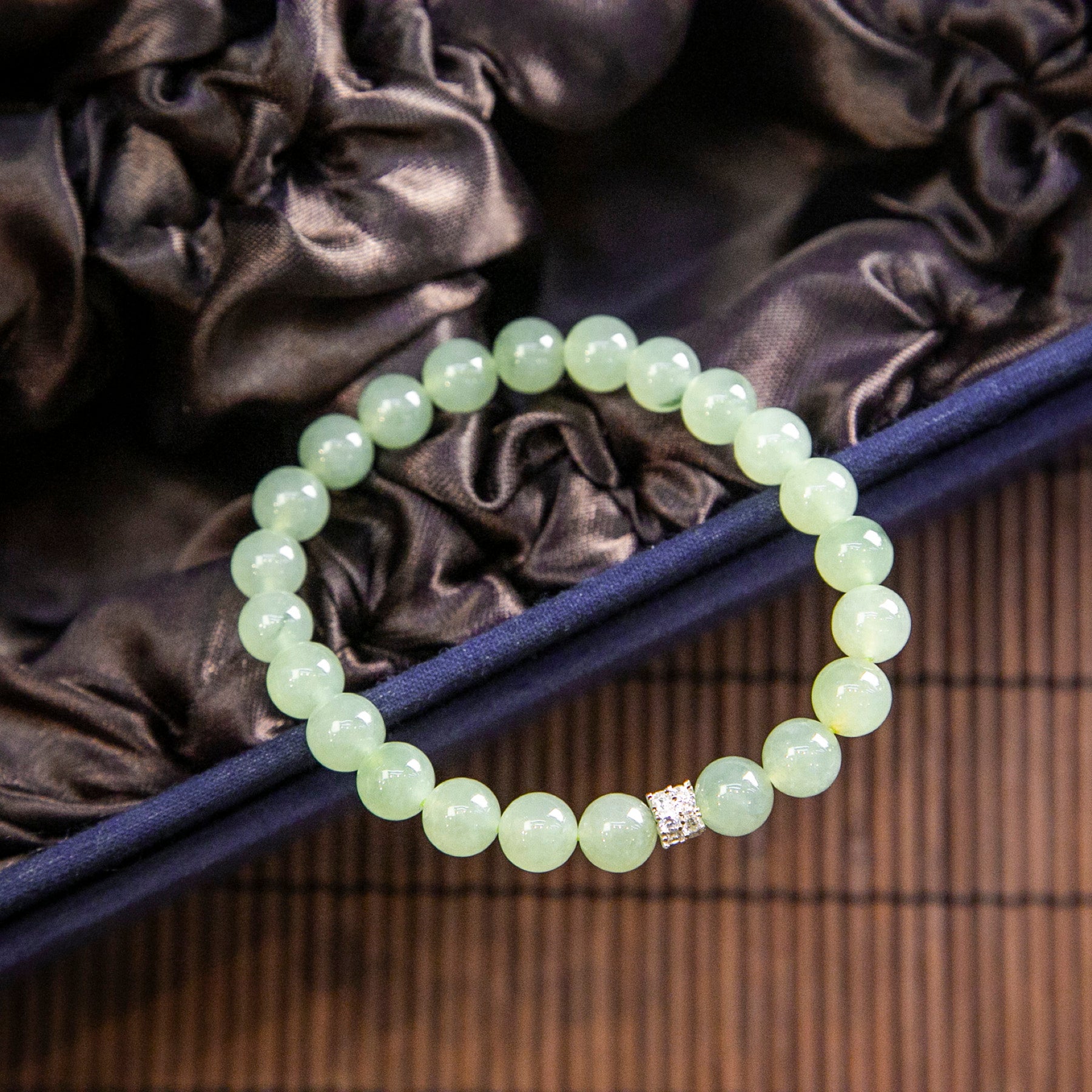 天然緬甸翡翠冰淡綠飄花手珠串 (7.8mm)