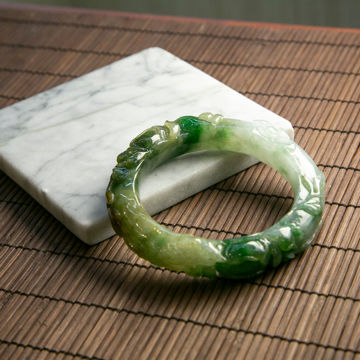 天然緬甸翡翠雕花飄花正圈手鐲 (適合圈口 55-57mm)