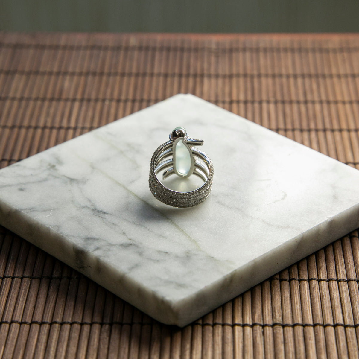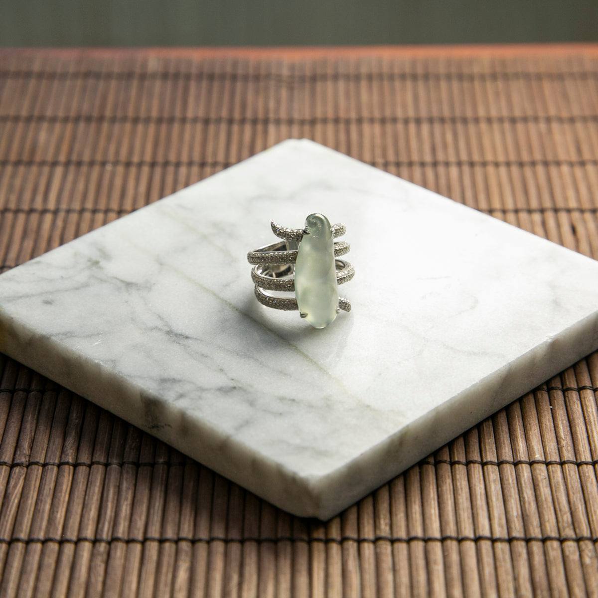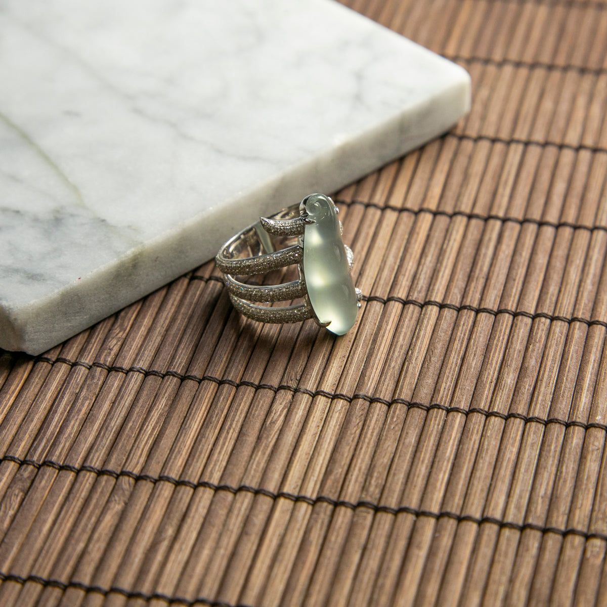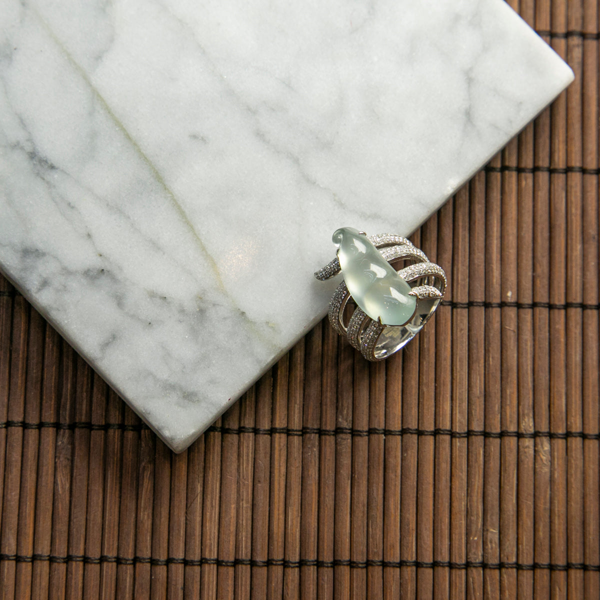 18K鉑金鑲鑽天然緬甸玻璃種冰白福豆戒指
