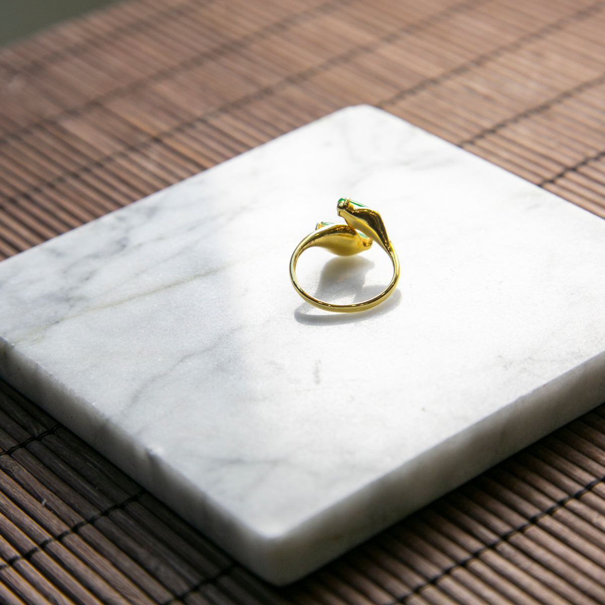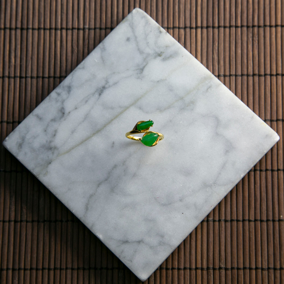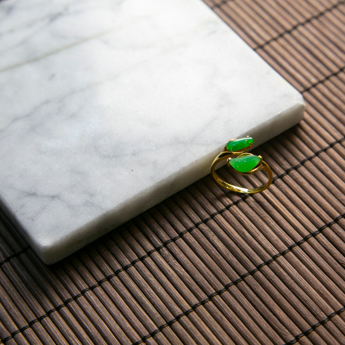 18K黃金鑲鑽天然緬甸翡翠綠隨形戒指