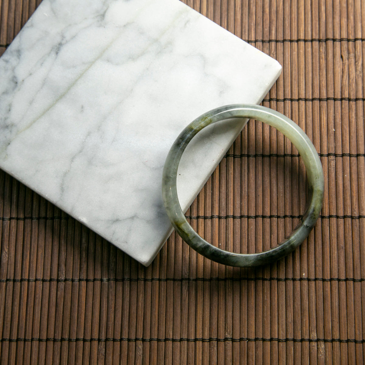 天然緬甸翡翠烏雞正圈手鐲 (適合圈口 54-56mm)