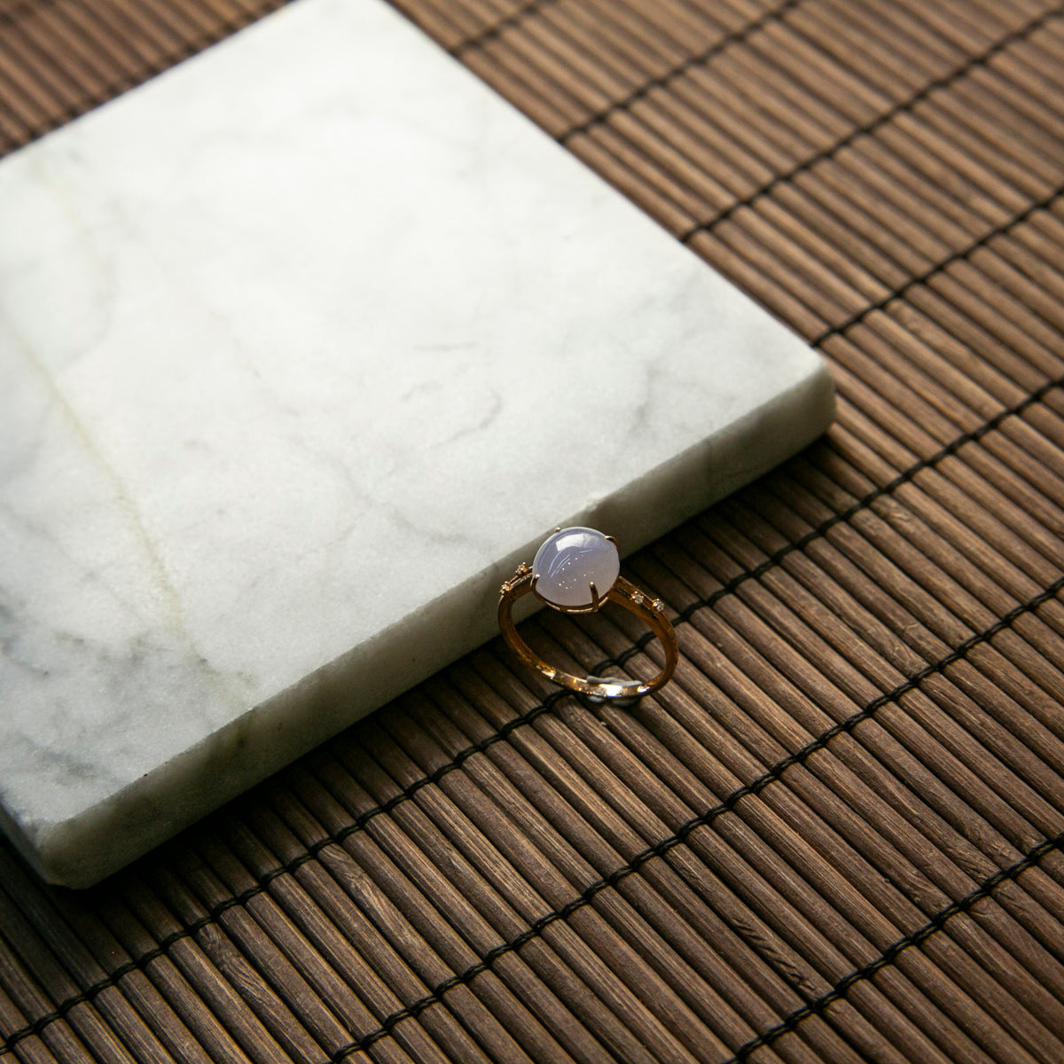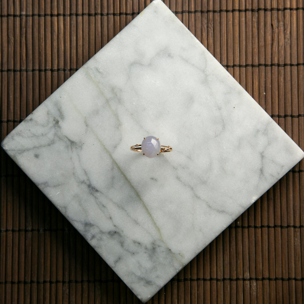 18K黃金鑲鑽天然緬甸翡翠冰紫蛋面戒指
