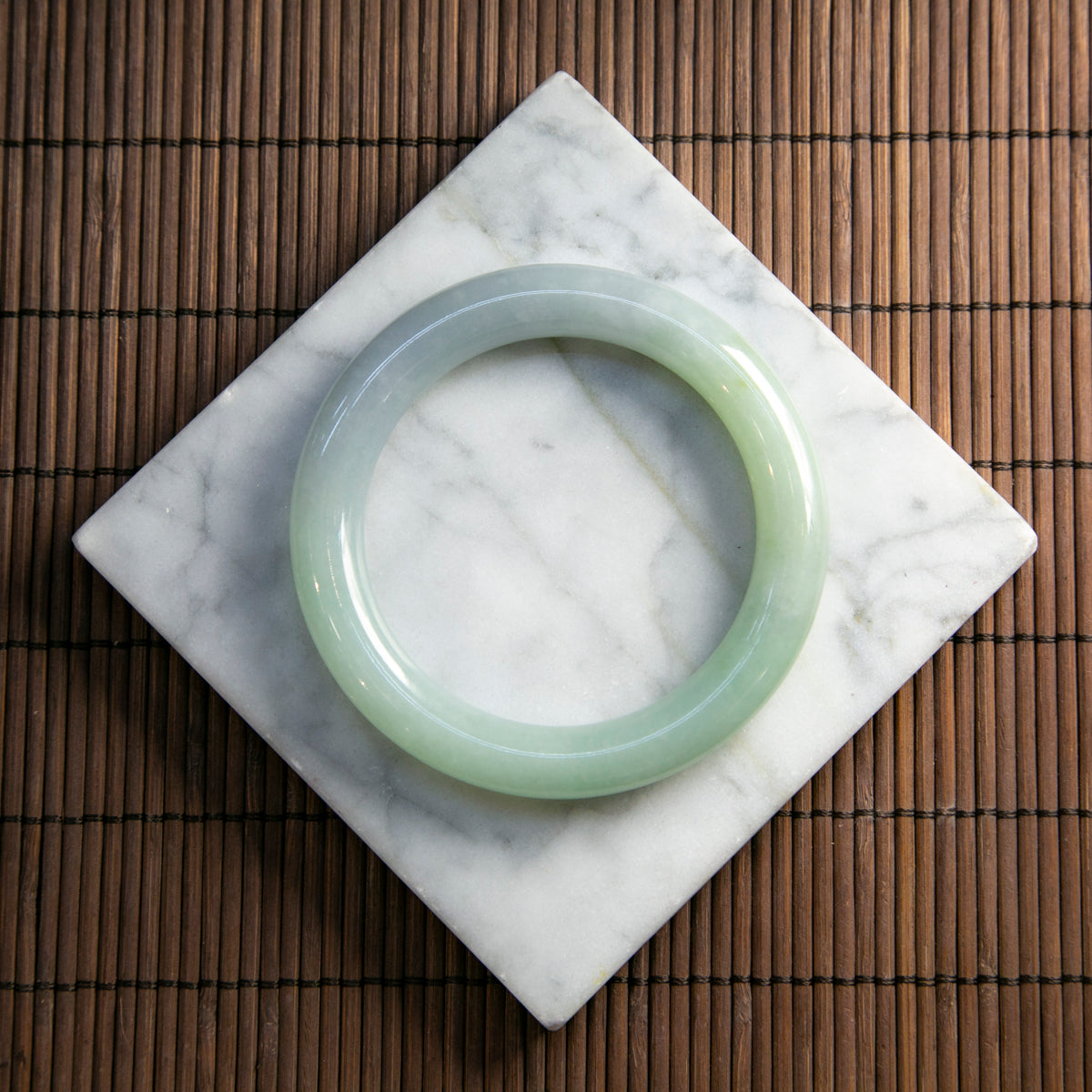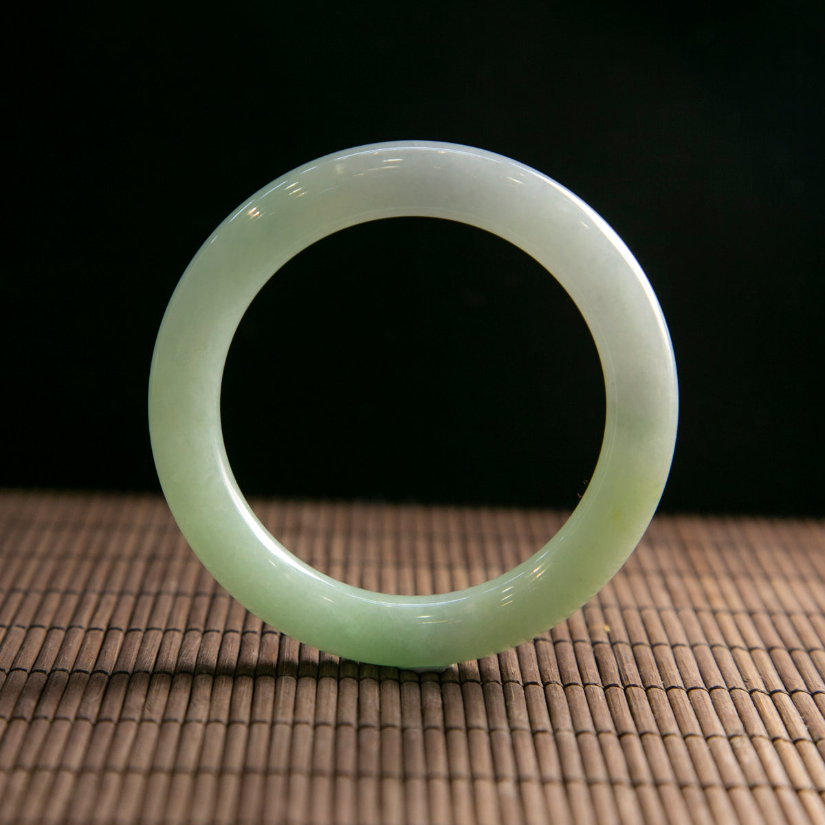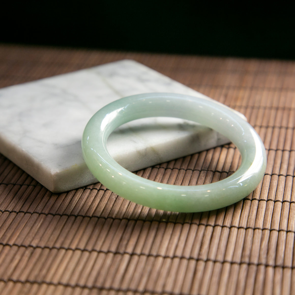 天然緬甸翡翠淡綠圓條手鐲 (適合圈口 55-57)