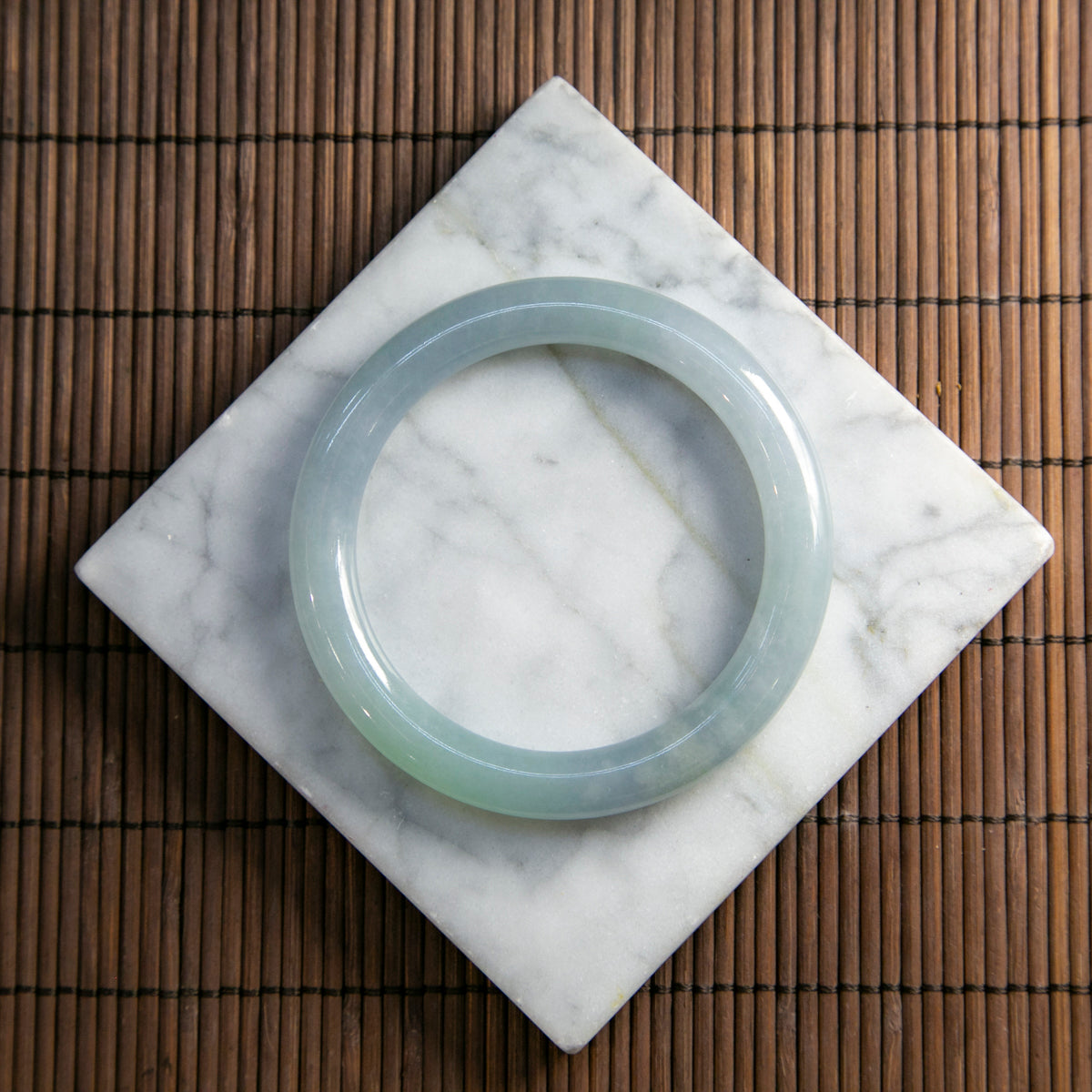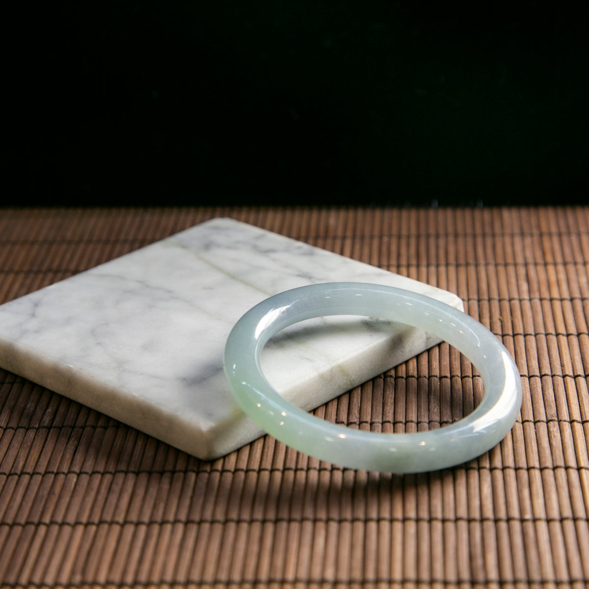 天然緬甸翡翠冰綠圓條手鐲 (適合圈口 57-59)