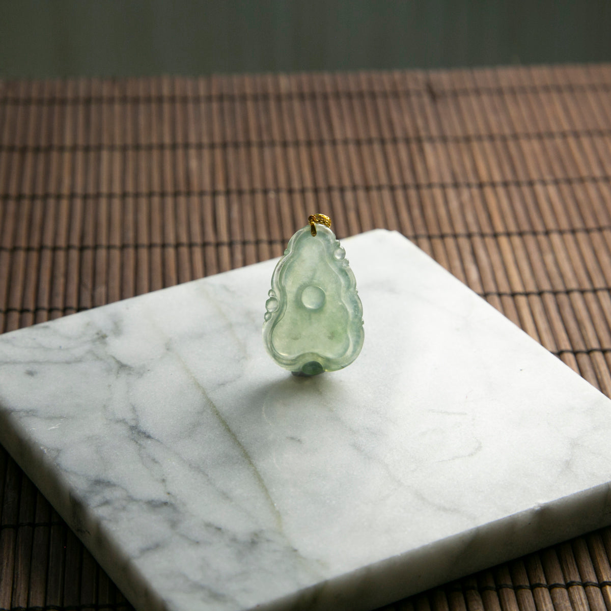 18K天然緬甸冰種荷葉翡翠吊墜