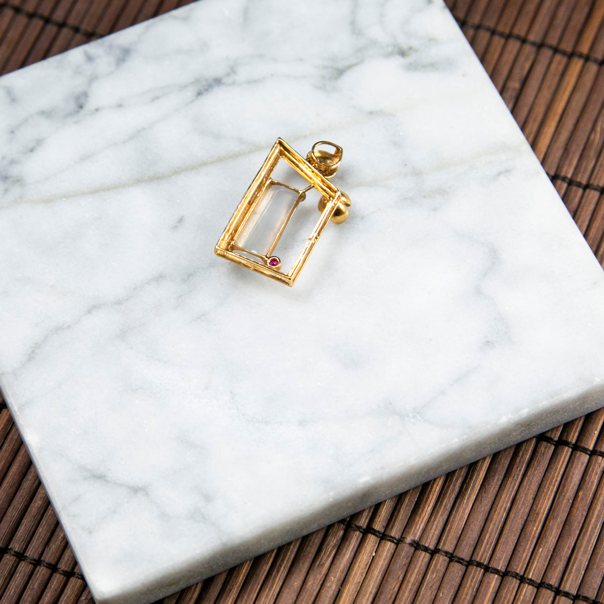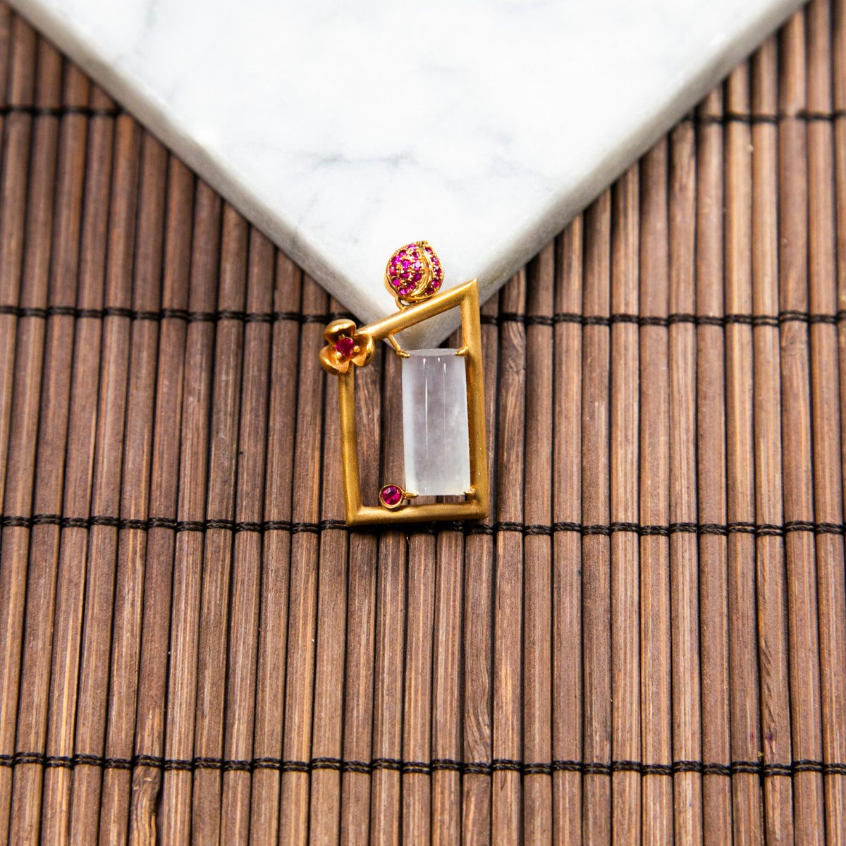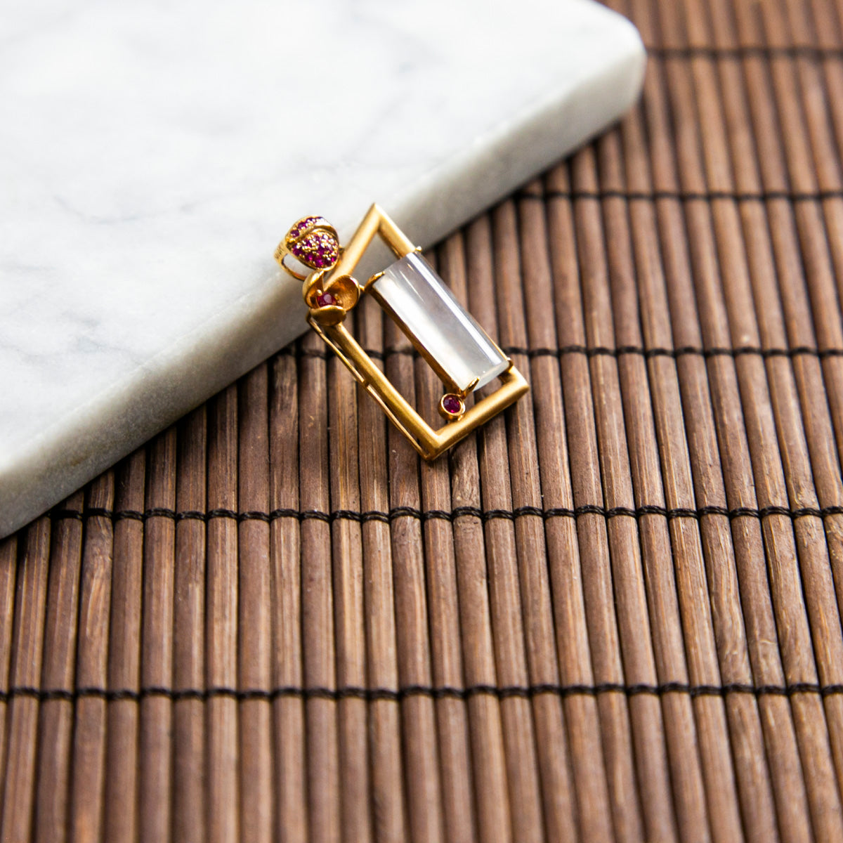 18K金鑲鑽天然緬甸翡翠冰白半柱特色吊墜