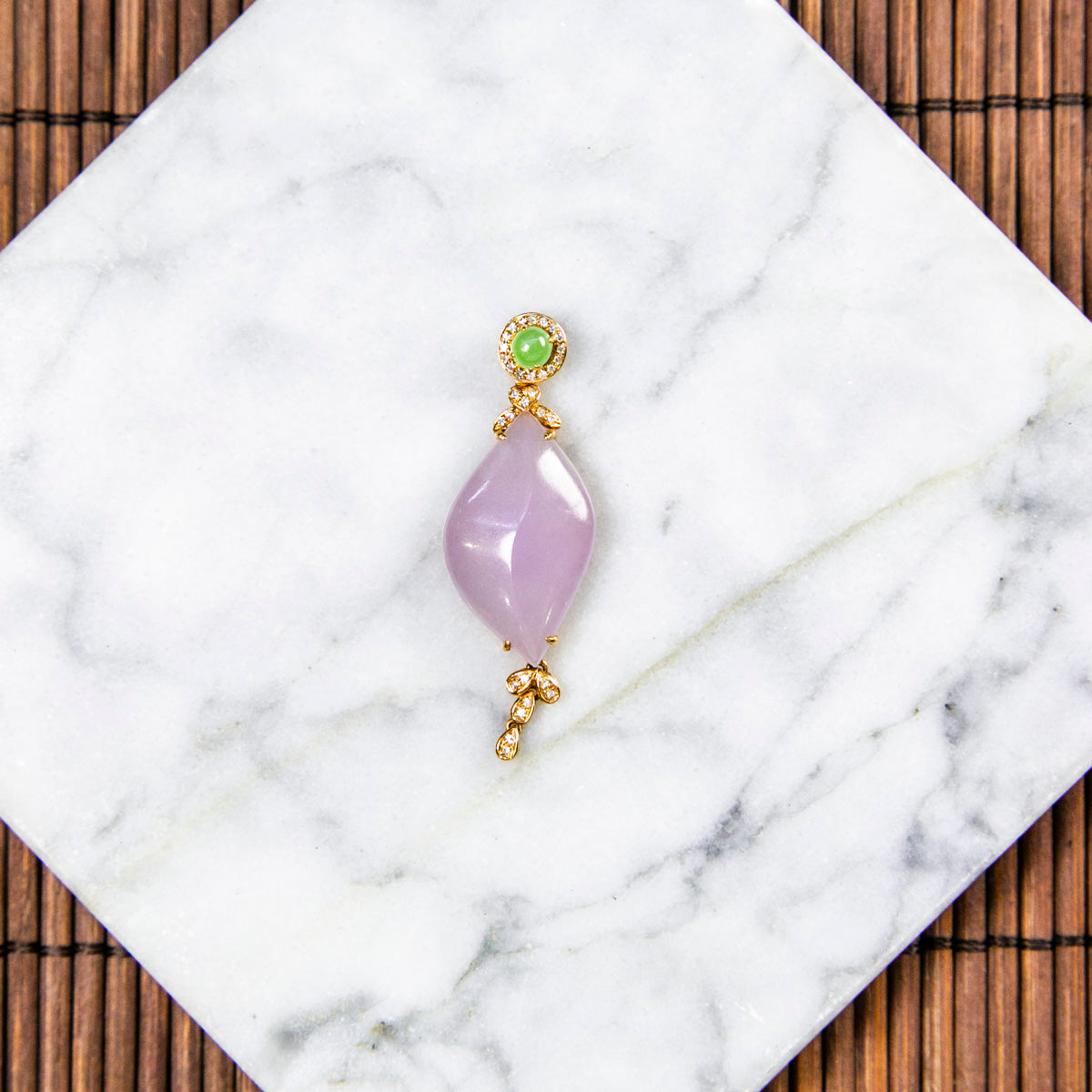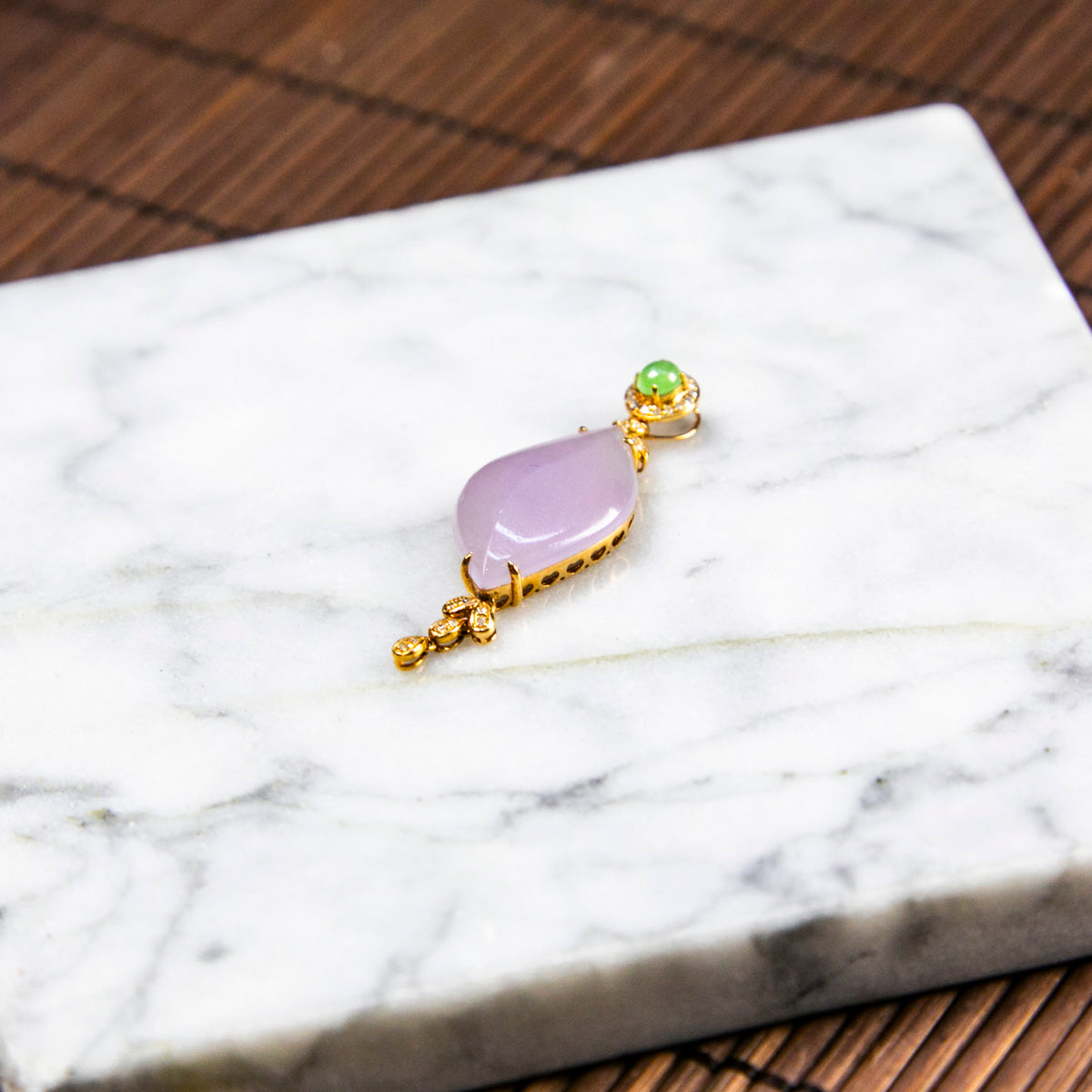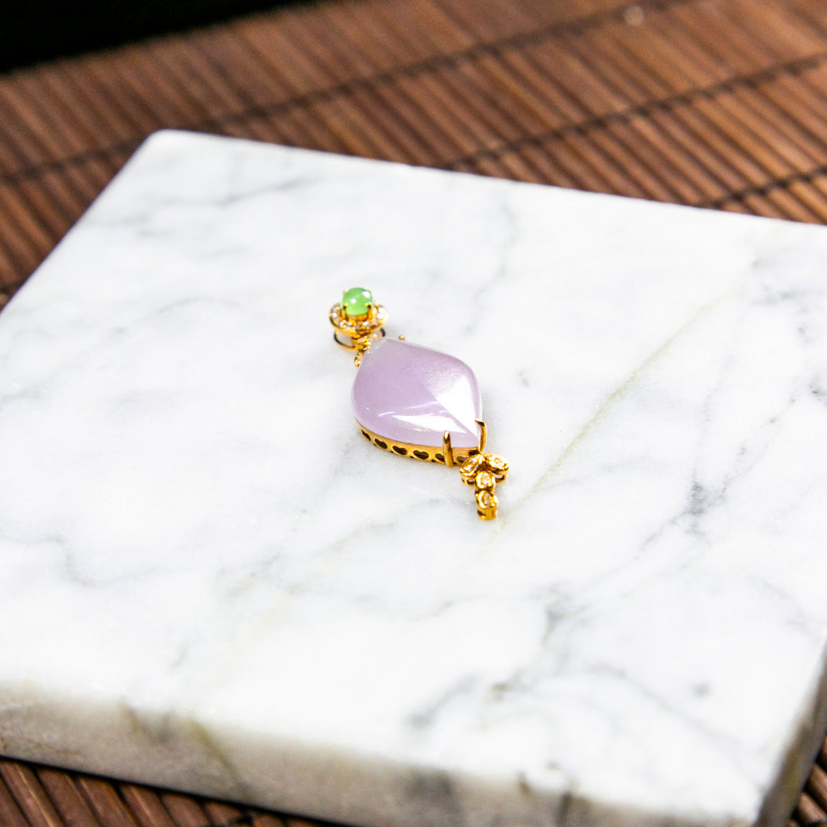 18K玫瑰金鑲鑽天然緬甸翡翠冰紫隨形吊墜