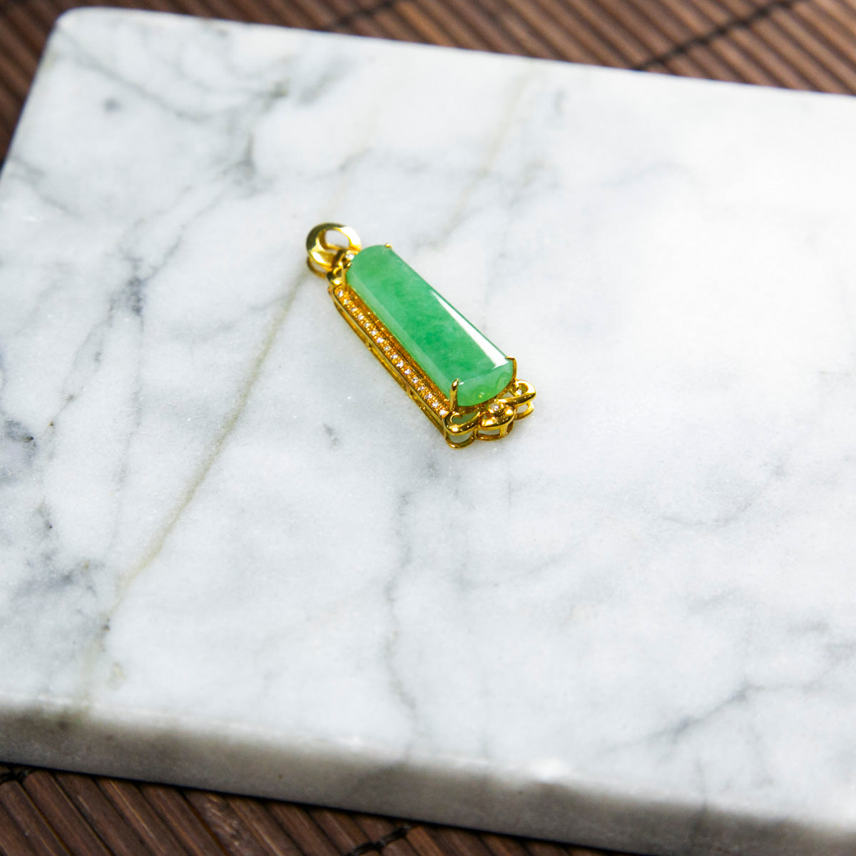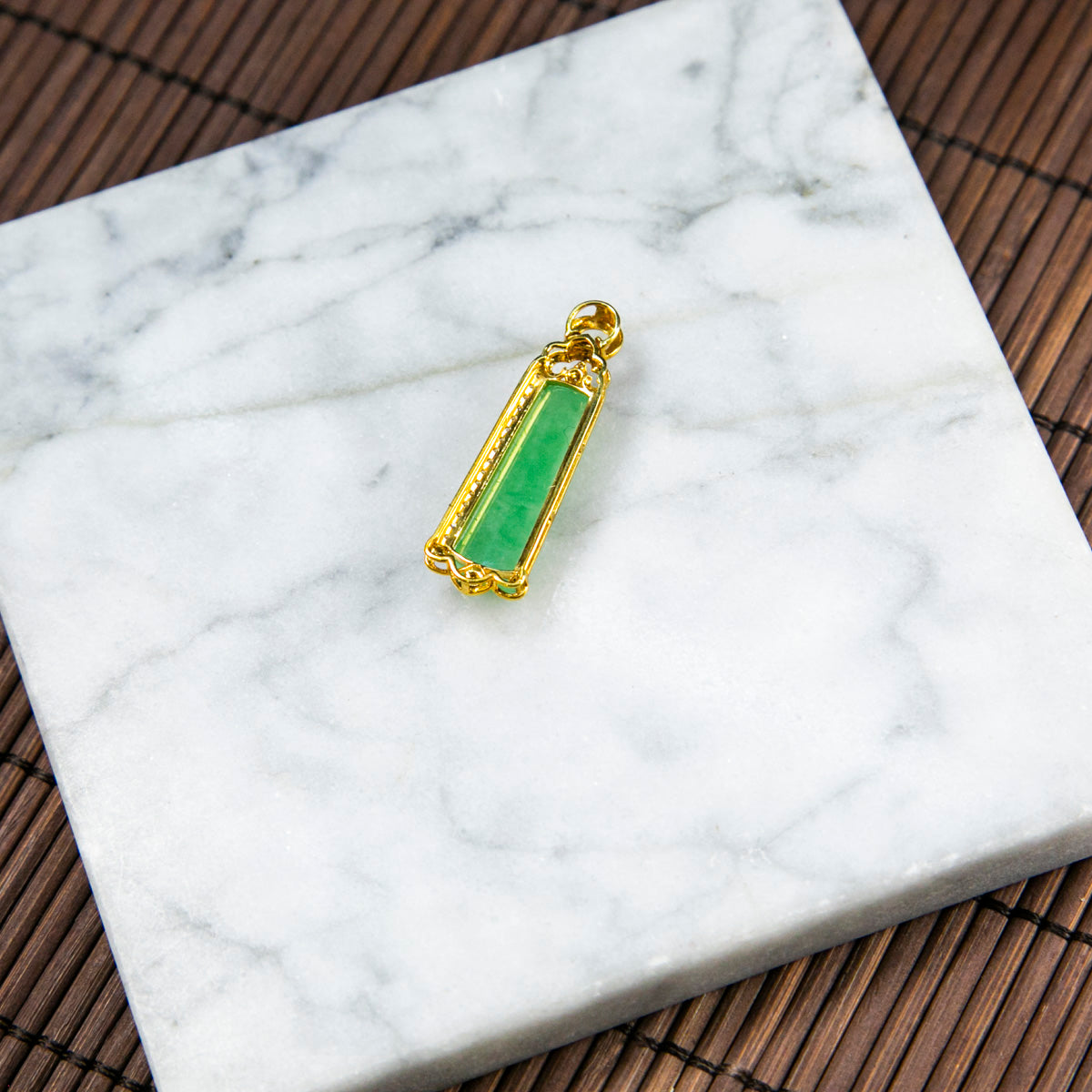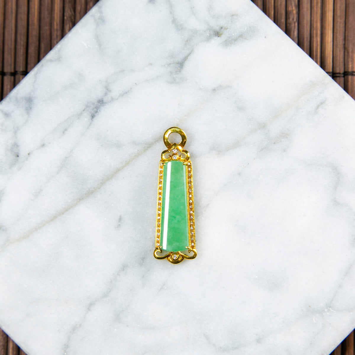 18K金鑲鑽天然緬甸翡翠果綠無事牌吊墜