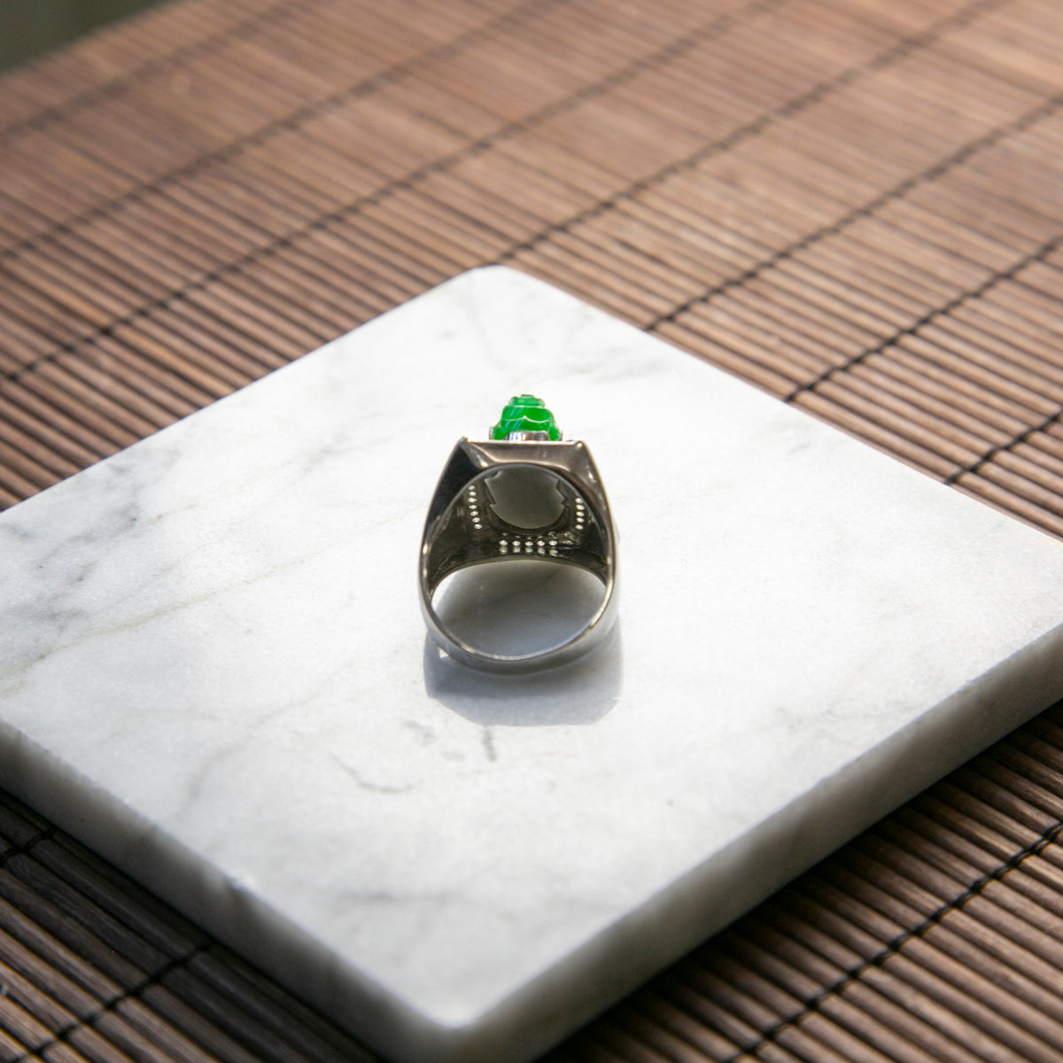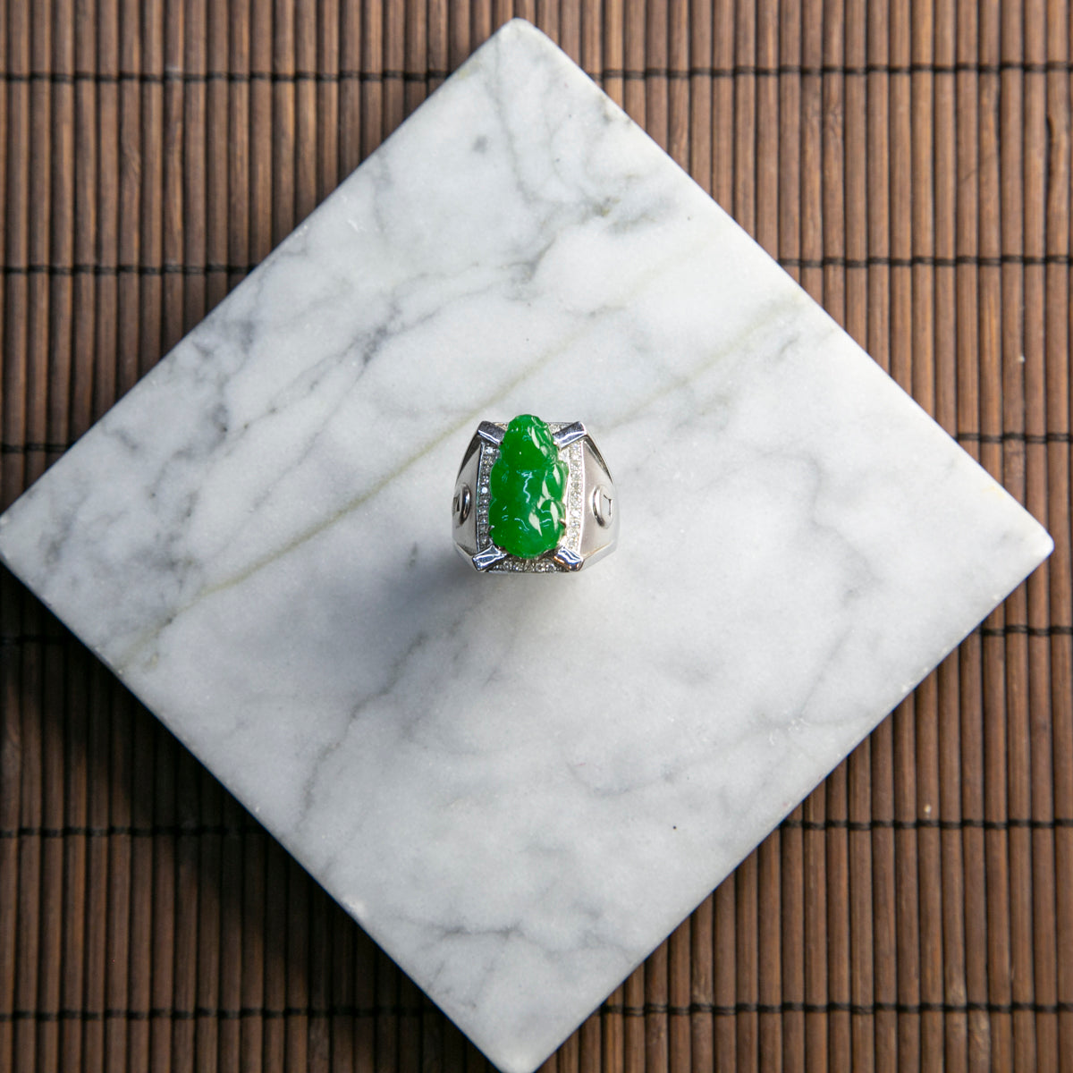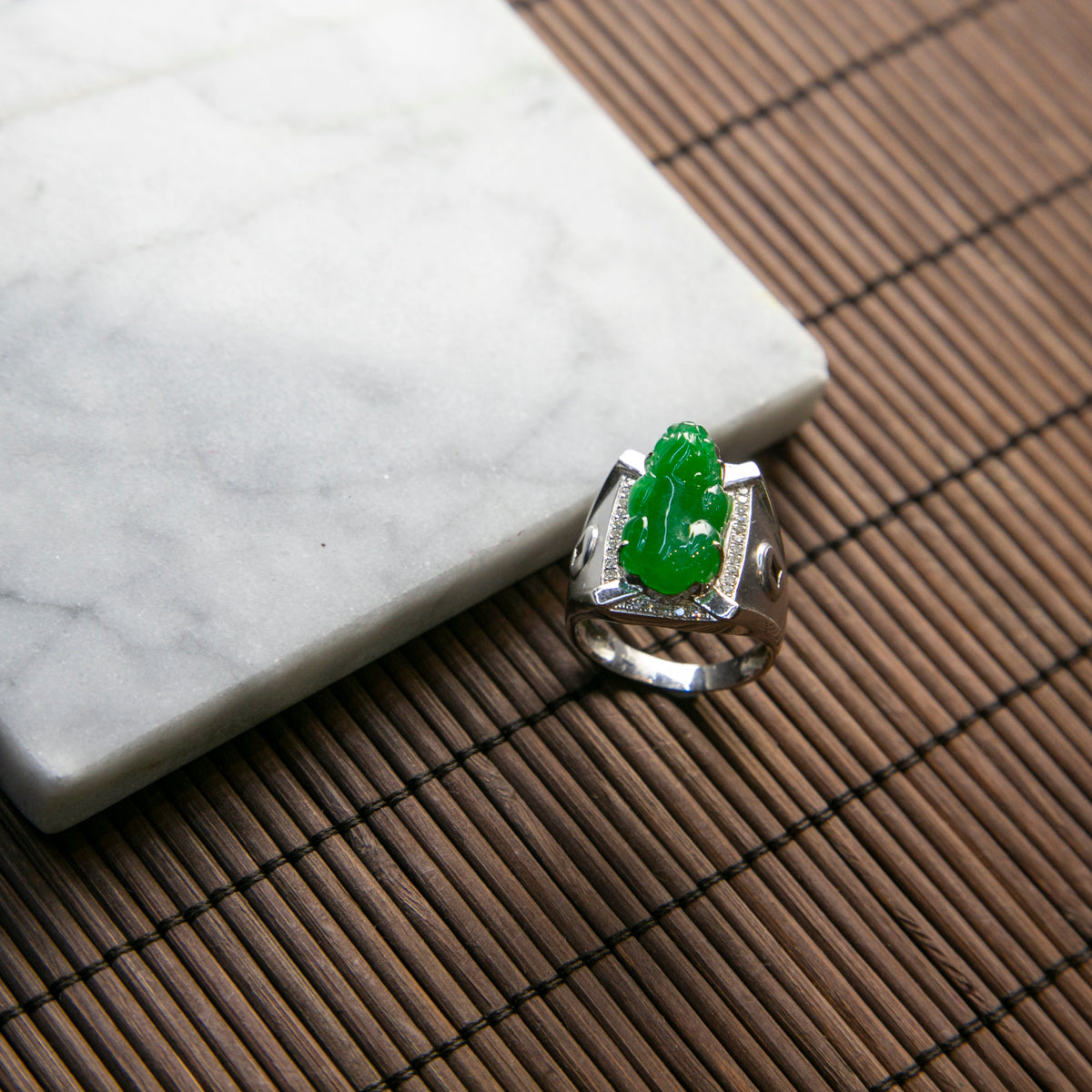 18K鉑金鑲鑽天然緬甸翡翠貔貅戒指
