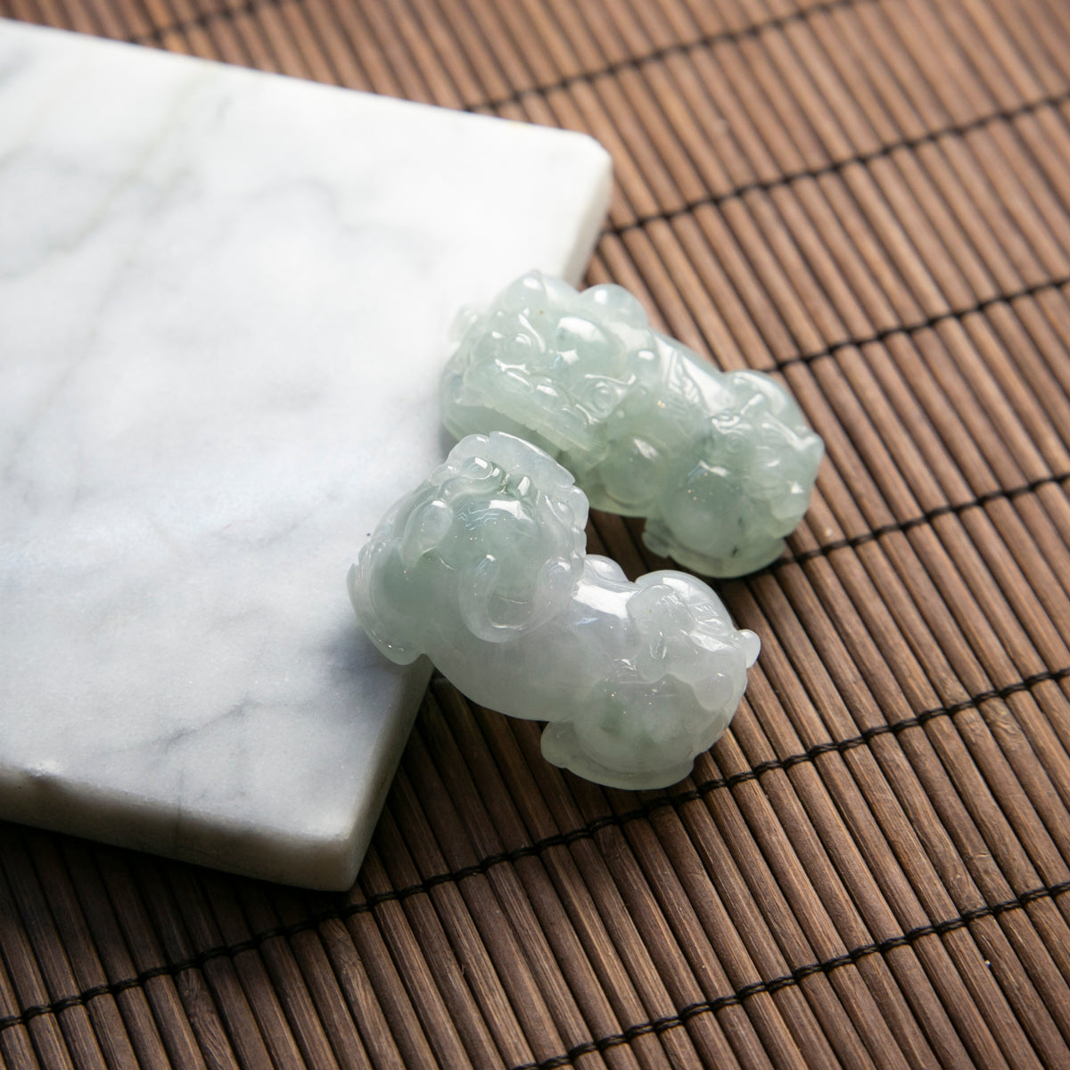 天然緬甸翡翠飄花貔貅一對