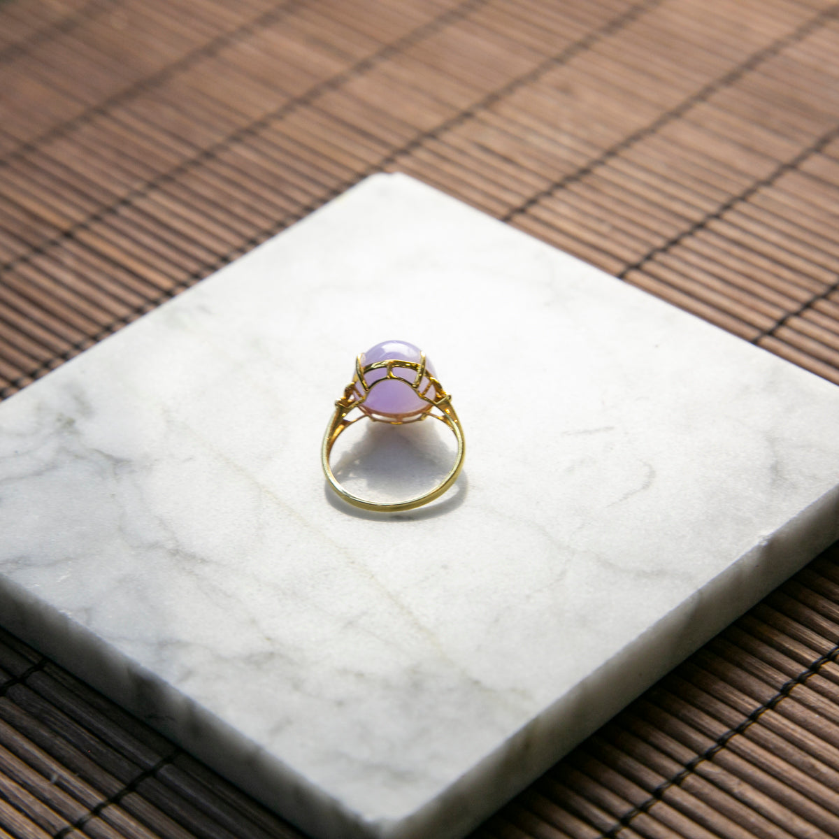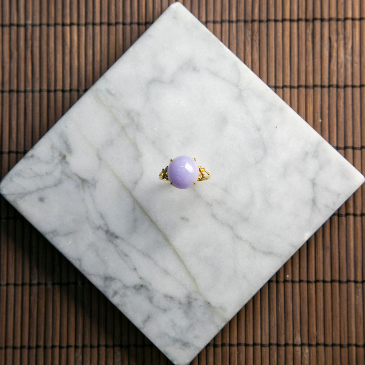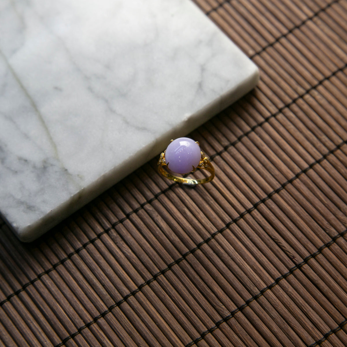 18K黃金鑲鑽天然緬甸翡翠紫蛋面戒指